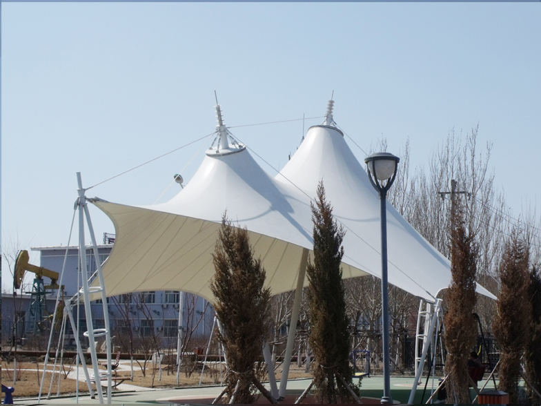 景觀膜結構又(yòu)稱張拉膜景觀,主要(yào)通(tōng)過膜結構的(de)張拉式 呈現(xiàn)出唯美(měi)的(de)結構特征;膜材料是(shì)指聚酯纖維基布或PVDF、PVF、PTFE等不(bù)同的(de)表面塗層,配以優質的(de)PVC組成的(de)具有(yǒu)穩定的(de)形态,并可(kě)承受一(yī)定載荷的(de)建築紡織品。它的(de)壽命因不(bù)同的(de)表面塗層而異,一(yī)般可(kě)達成10-20年(nián);其外(wài)觀整潔大(dà)方,自(zì)潔性強。主要(yào)應用(yòng)于各大(dà)公園,世博園,和(hé)一(yī)些(xiē)廣場(chǎng),商場(chǎng)等場(chǎng)所。