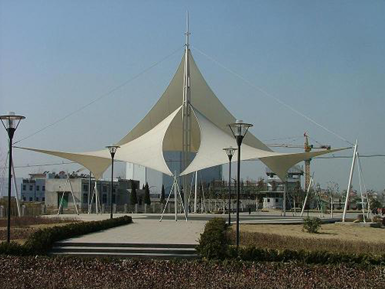景觀膜結構又(yòu)稱張拉膜景觀,主要(yào)通(tōng)過膜結構的(de)張拉式 呈現(xiàn)出唯美(měi)的(de)結構特征;膜材料是(shì)指聚酯纖維基布或PVDF、PVF、PTFE等不(bù)同的(de)表面塗層,配以優質的(de)PVC組成的(de)具有(yǒu)穩定的(de)形态,并可(kě)承受一(yī)定載荷的(de)建築紡織品。它的(de)壽命因不(bù)同的(de)表面塗層而異,一(yī)般可(kě)達成10-20年(nián);其外(wài)觀整潔大(dà)方,自(zì)潔性強。主要(yào)應用(yòng)于各大(dà)公園,世博園,和(hé)一(yī)些(xiē)廣場(chǎng),商場(chǎng)等場(chǎng)所。